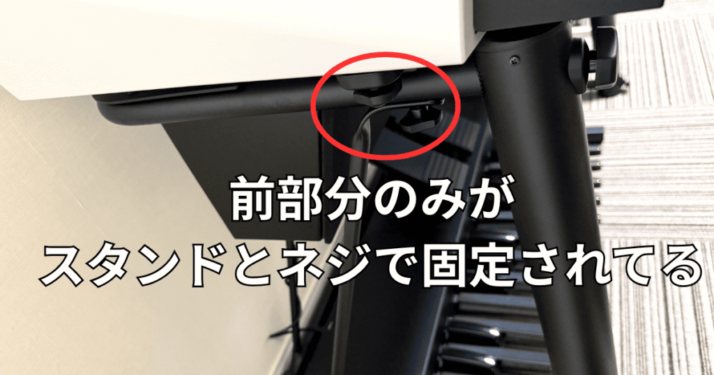 何故かというと、エレクトーン本体とスタンドは本体の前部分のみだけネジで固定されていて後部分はスタンドと固定されてないからです。