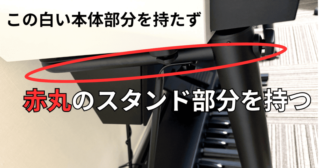 なので、本体部分のみをそのまま持ち上げると本体後ろのみが持ち上がってしまい、本体がねじれて壊れてしまう可能性があるそうです。